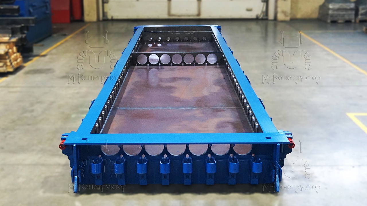 Бетонные пустотные плиты ПК — один из самых распространенных и востребованных видов ЖБИ. Это объясняется тем, что такие плиты отличаются прочностью на изгиб, хорошей шумо-, звуко- и теплоизоляцией, выдерживают большие нагрузки. Компания "М-Конструктор" изготавливает металлические формы для плит с пустотами из качественной стали, соблюдая все установленные ГОСТом размеры. Изделия включают в себя формующий поддон из металла с упорами, на которые осуществляется натяжение арматуры перед заливкой бетона и откидные борта или съемные рамки с отверстиями для пуансонов. Кроме форм для плит перекрытий, в компании "М-Конструктор" можно заказать дополнительное оборудование: • пуансоны с установкой для извлечения, • вибростол, вибротумба. При заказе двух и более форм предусмотрены скидки.