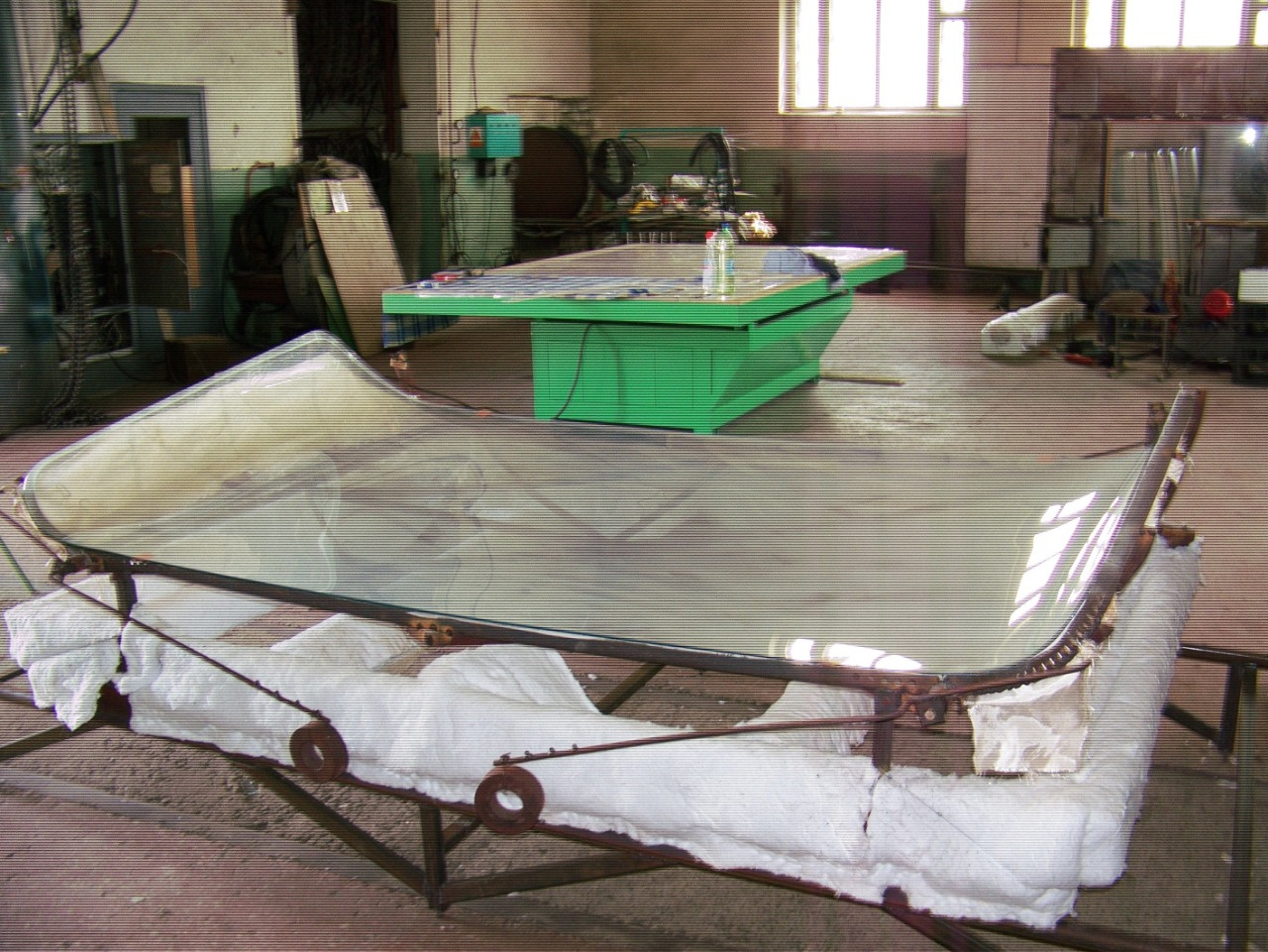 Продам комплект оборудования для производства триплекса. В него входит печь моллирования ( размер камеры нагрева 3м*2м*0,7м) 120кВт , стол резки стекла с гидравлическим подъемом и с поддувом, автоклав для запекания триплекса (рабочие размеры 1950*3500).