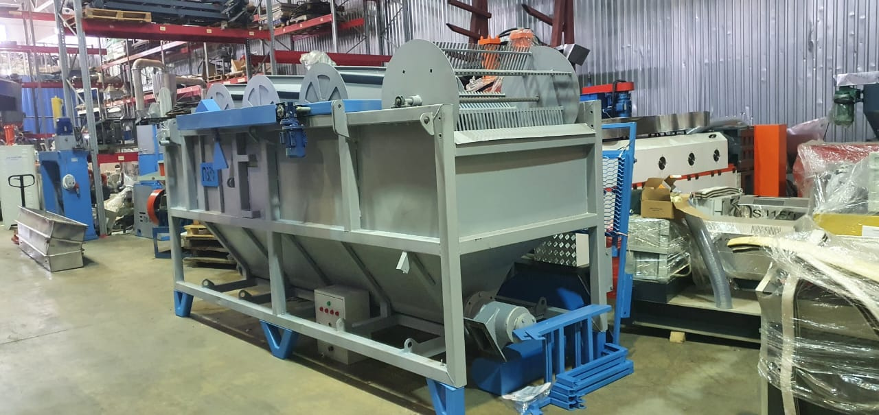 | Ванна флотации PZO 301-VF. Мойка полимеров с положительной и отрицательной плавучестью. Ванна с вращающимися перфорированными лопатками, шнек проходящий по дну ванны и шнек для выгрузки. Сырье с положительной плавучестью перемещается по поверхности воды и выгружается из ванны при помощи вертикальной центрифуги. Сырье с отрицательной плавучестью перемещается шнеком по дну емкости. В конце ванны выгружается шнеком наверх. Объем 4,6 м/куб. Размеры ДхШхВ, мм: 4000 х 2565 х 2568 |
