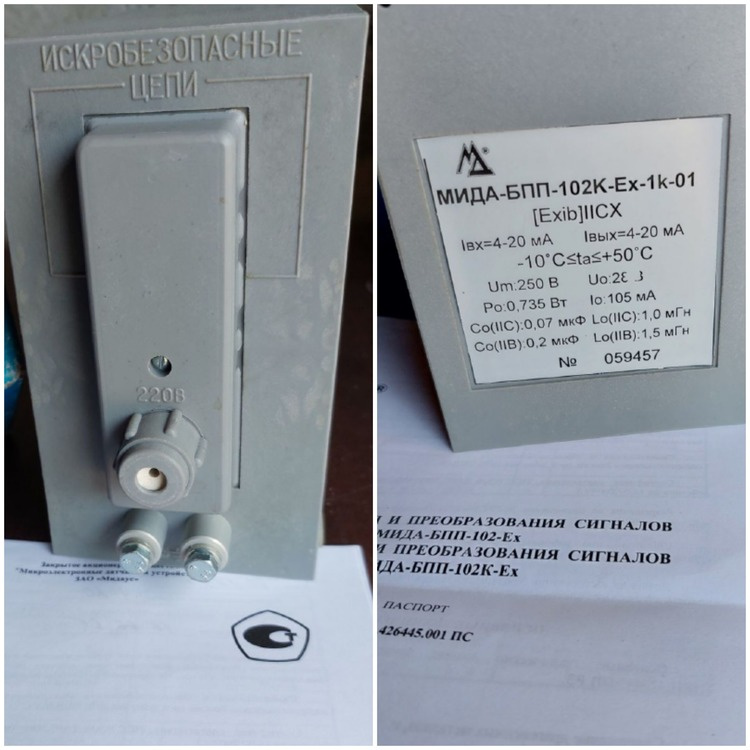 МИДА-БПП-102-ЕХ-1К блоки живлення та перетворення призначені для організації живлення та іскрозахисту сигнальних ланцюгів двопровідних датчиків з уніфікованим вихідним сигналом 4-20 мА постійного струму ( датчиків тиску 4-20 мА ) з масштабним перетворенням сигналу датчика в уніфікований вихідний сигнал постійного струму в системах контролю та електроавтоматики вибухонебезпечних виробництв.