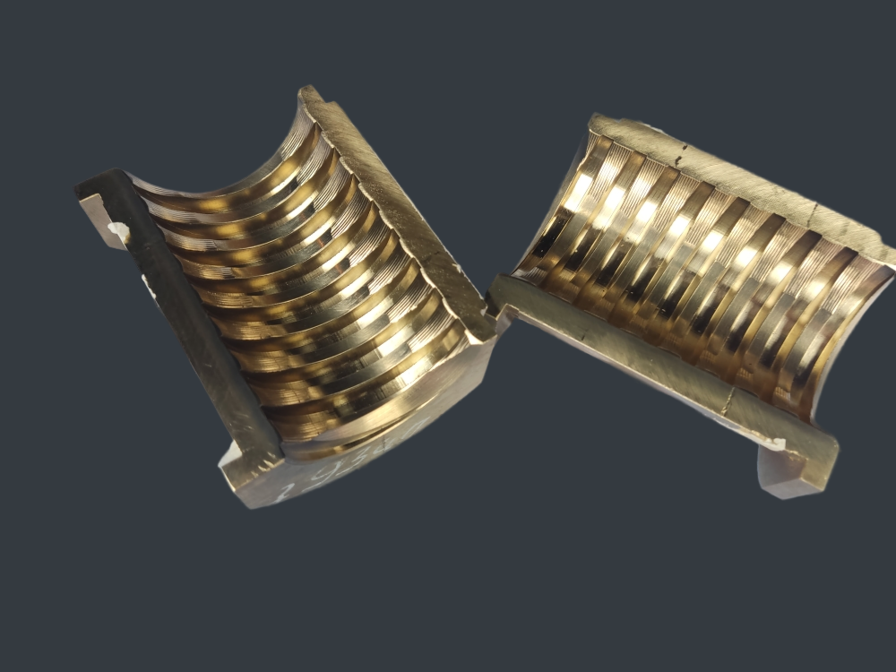 Применяется в фартуках токарно-винторезных станков в качестве запасной части через которую проходит ходовой винт, может поставляться как отдельно ( разрезная бронзовая гайка состоящая из 2-х полугаек) так и в комплекте с чугунным корпусом.