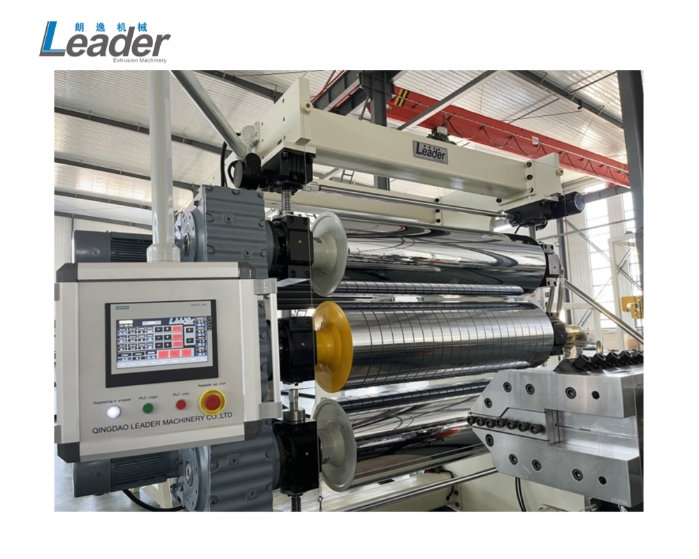 Эта конкретная линия экструзии листов с Т-образной рукояткой из ПЭВП использует одношнековый экструдер, процесс экструзии с плоской Т-образной головкой и специальный календарь с контурным роликом, производящим технологию калибровки продольной Т-образной формы, а также соответствующие детали машины, расположенные ниже по потоку, такие как охлаждающие рамы и устройство для обрезки кромок и продольной резки, резиновые ролики тянущего станка, поперечный резак, конвейерный стол и т.д. Высокоэффективная система охлаждения позволяет получать листы толщиной до 4-5 мм.