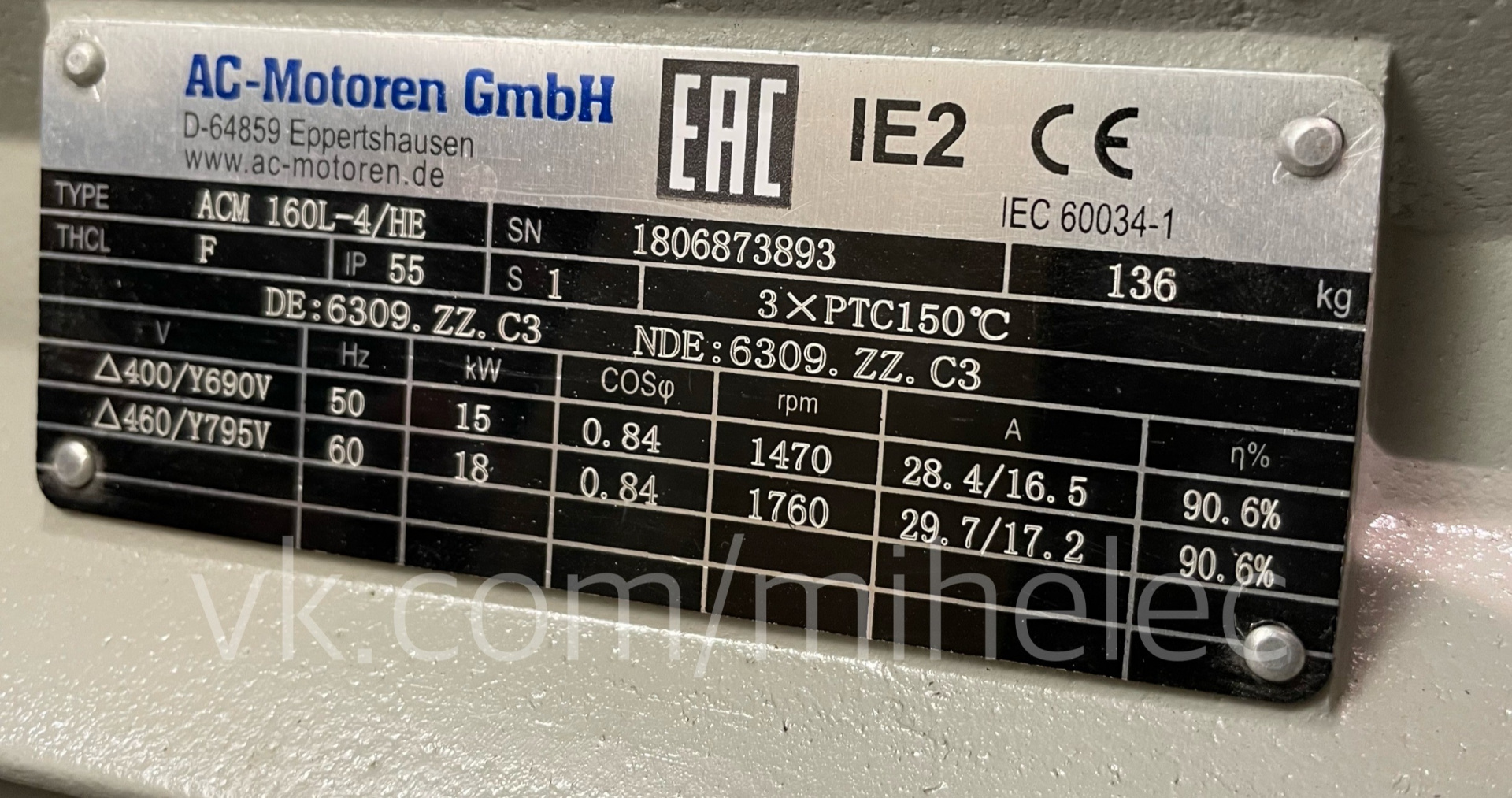 Электродвигатель AC-Motoren GmbH, ACM 160L-4/HE, 15 кВт 1470 об/мин (15квт 1500 оборотов в минуту) - Продам в Москве
