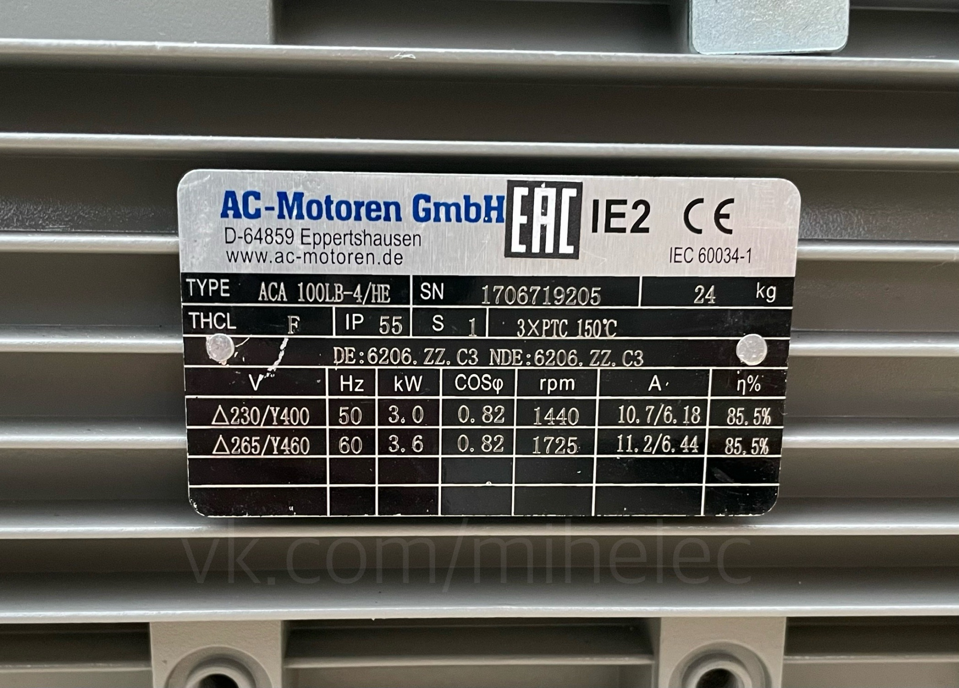 Электродвигатель AC-Motoren GmbH, ACA 100LB-4/HE, 3 кВт 1440 об/мин (3квт 1500 оборотов в минуту) - Продам в Москве