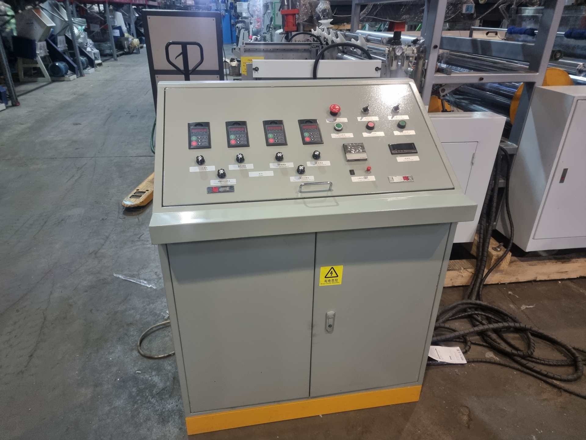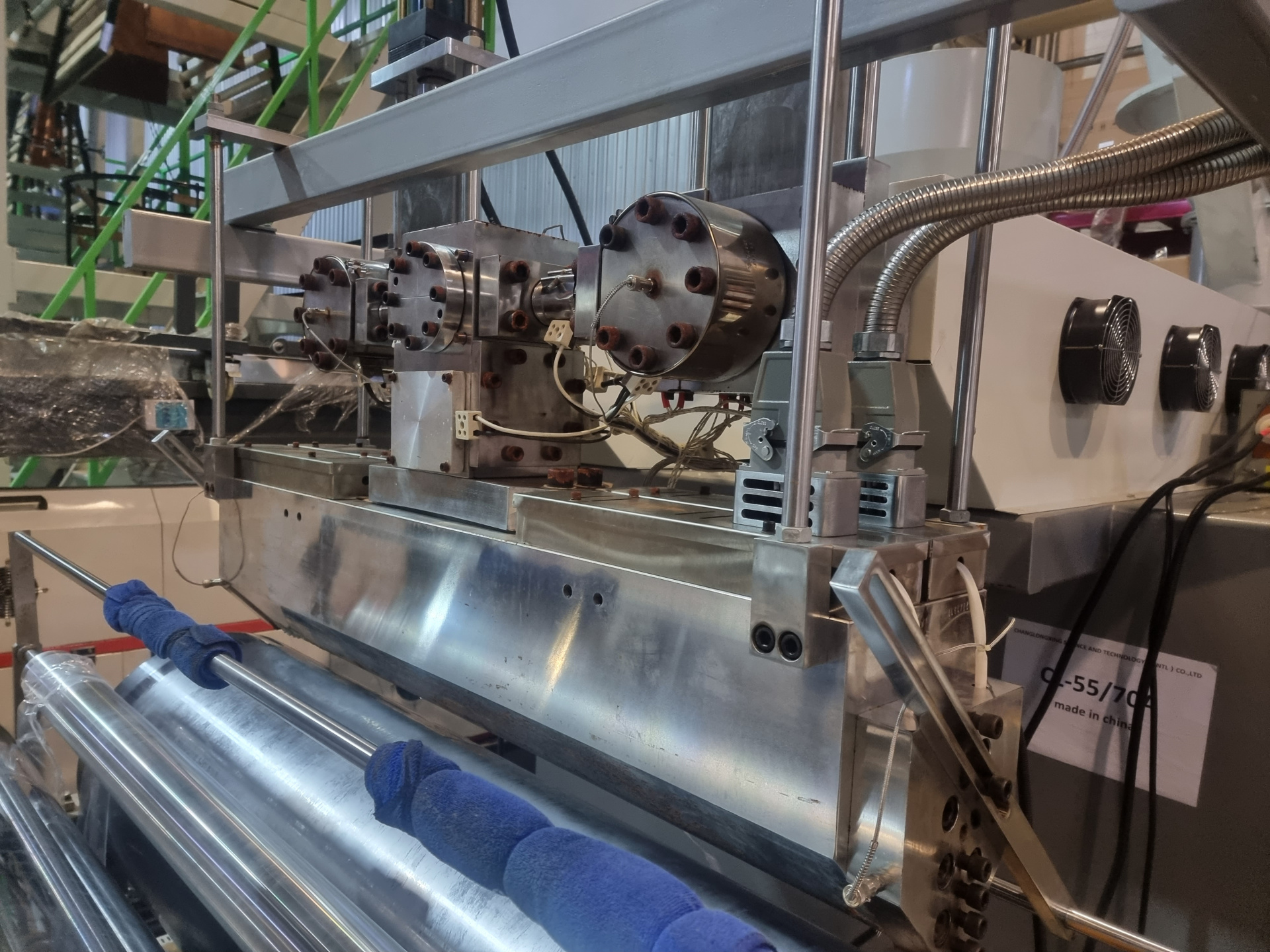 На фото показана линия CL-55/70A - это одна из самых популярных моделей у производителей пленки, хорошо зарекомендовала себя в первую очередь из-за отношения цена/качество/производительность и предназначена для производства стрейча из первичной и вторичной гранулы.