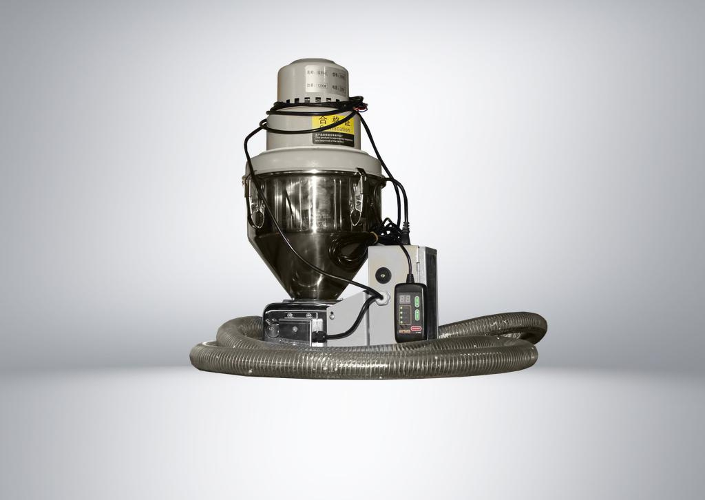 | Автономный загрузчик «FLK-300» предназначен для загрузки гранулированного/дроблёного материала из ёмкости в следующий по циклу агрегат (бункер загрузки экструдера, термопластавтомат, сушильный бункер, смеситель и пр.).Комплектация: вакуумный загрузчик, Коллекторный двигатель (щеточный) 1,2 кВт, напряжение 220в, производительность 250 кг/ч, размеры блока управления 40*36*60см, масса 14 кг, размер бункера 40*29*46см, объём 7,5л, Пневмошланг 4м. |