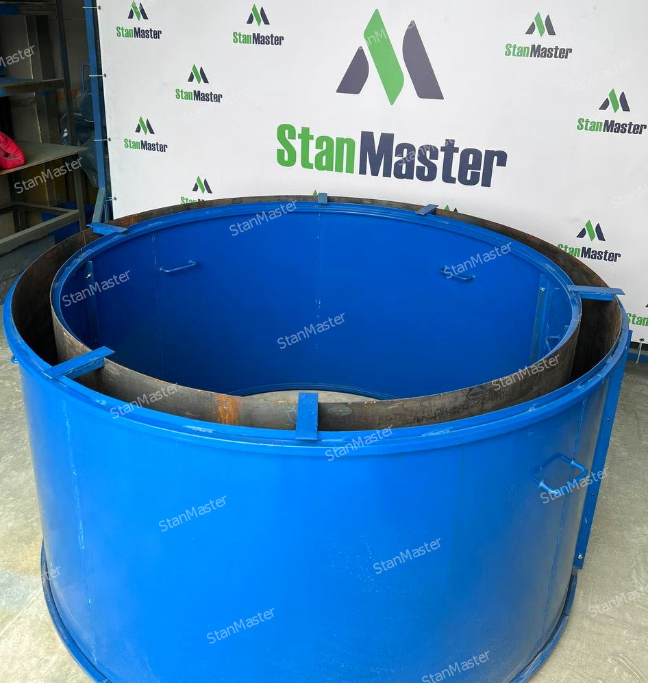 Опалубка предназначена для изготовления железобетонных, армированных колодезных (канализационных) колец из полусухих растворов, с низким водоцементным содержанием, или как их принято еще называть — из жёстких цементных смесей.