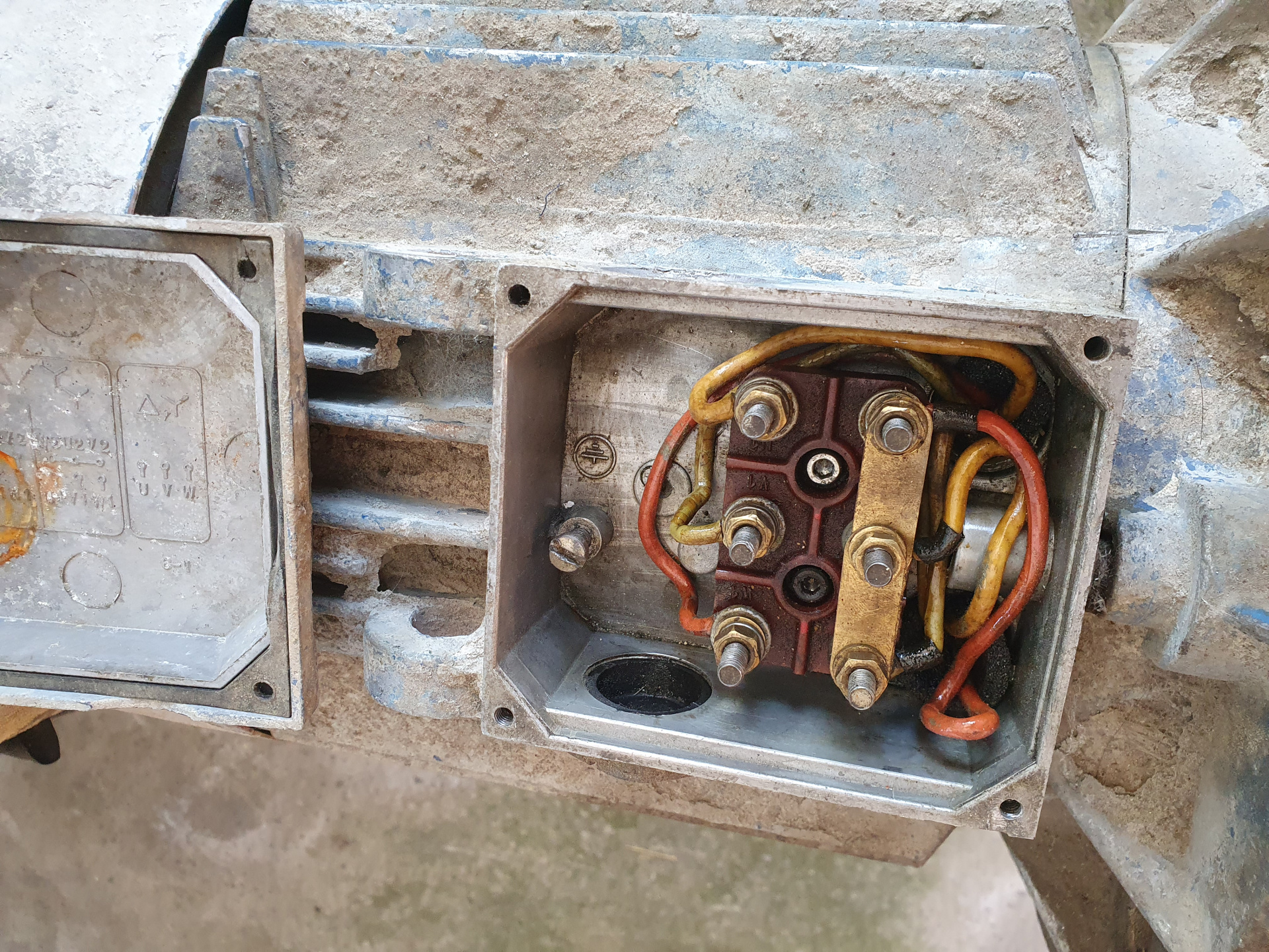 Асинхронный, соединение: фланец, лапы (изготовление специализированное под насос), 3~380 в., 7,5 квт., 1500 об/мин. Приобретался с насосом в 2017 году, снят для профилактики в 2021 году (осенью). Проведённые работы по двигателю: полная разборка, очистка всех внутренних поверхностей от грязи, пыли и лёгкой коррозии (ржи), очистка, продувка воздухом высокого давления и покрытие (пропитка) защитным электроизоляционным лаком с последующей горячей сушкой обмоток индуктивности, профилактика подшипников с добавлением специализированной молибденовой смазки, сборка, контрольный запуск (работает нормально, ток холостого хода 7 А). На насос больше не устанавливался.