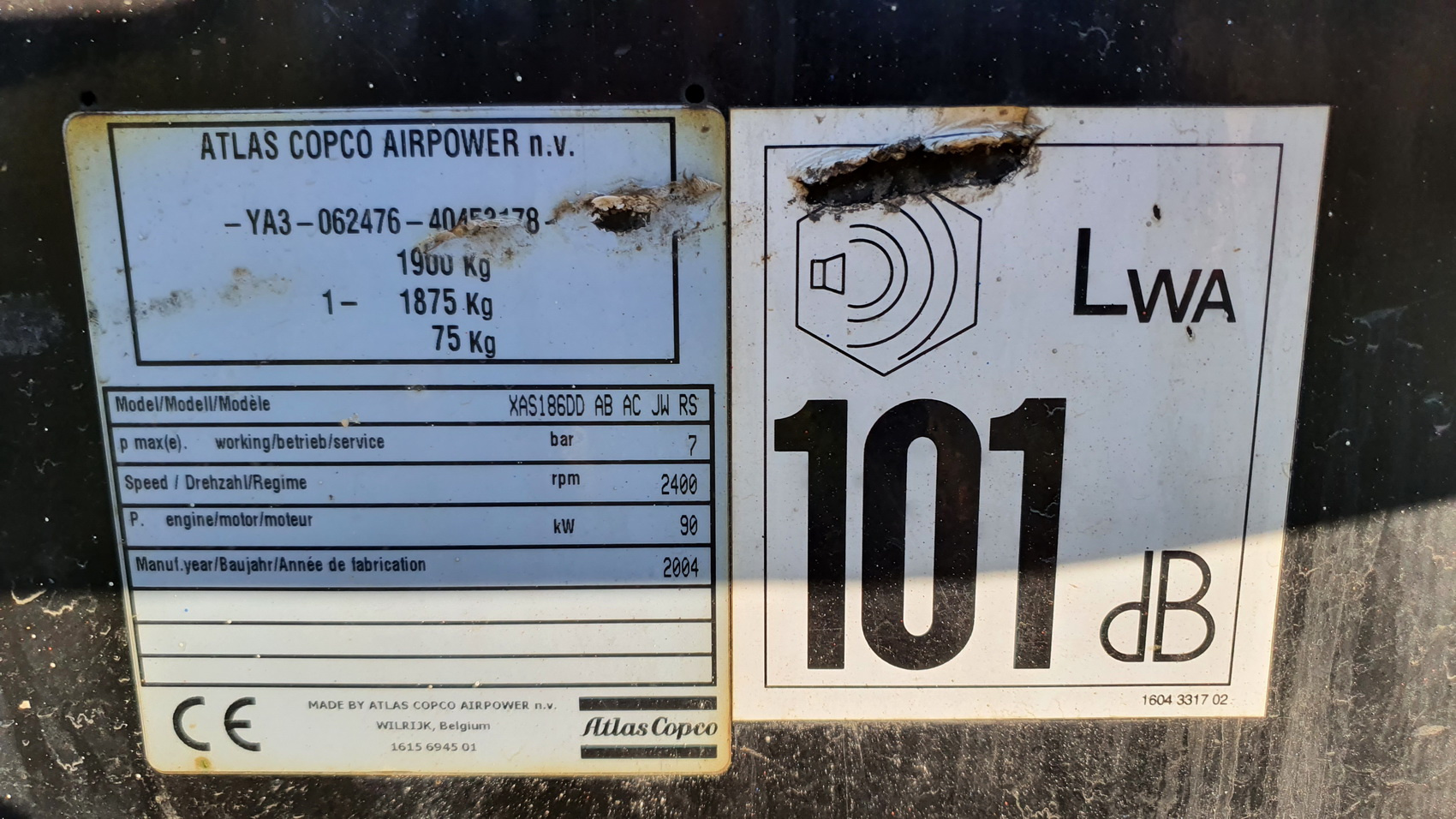 1). Компрессор Atlas Copco XAS 186, 2004г.в, 2473м.т.ч. Состояние Отличное!