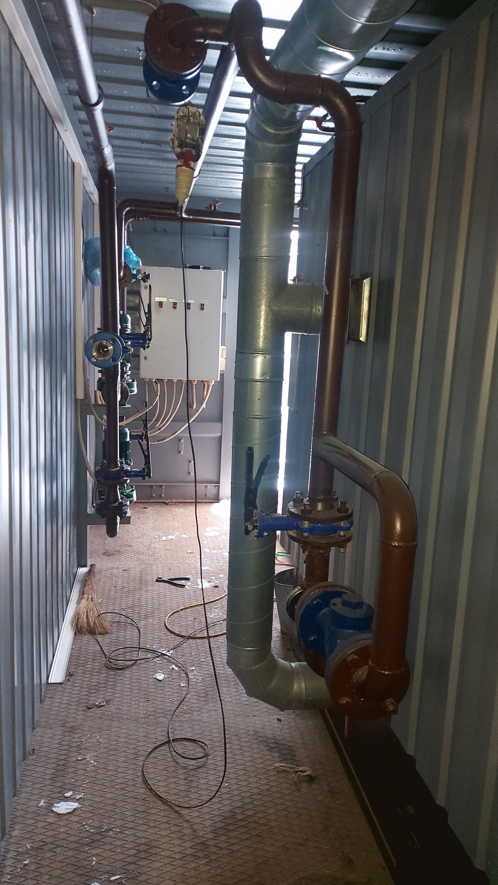 Котельная смонтирована на базе контейнера. Легко демонтируется и переносится. Труба входит в стоимость.
