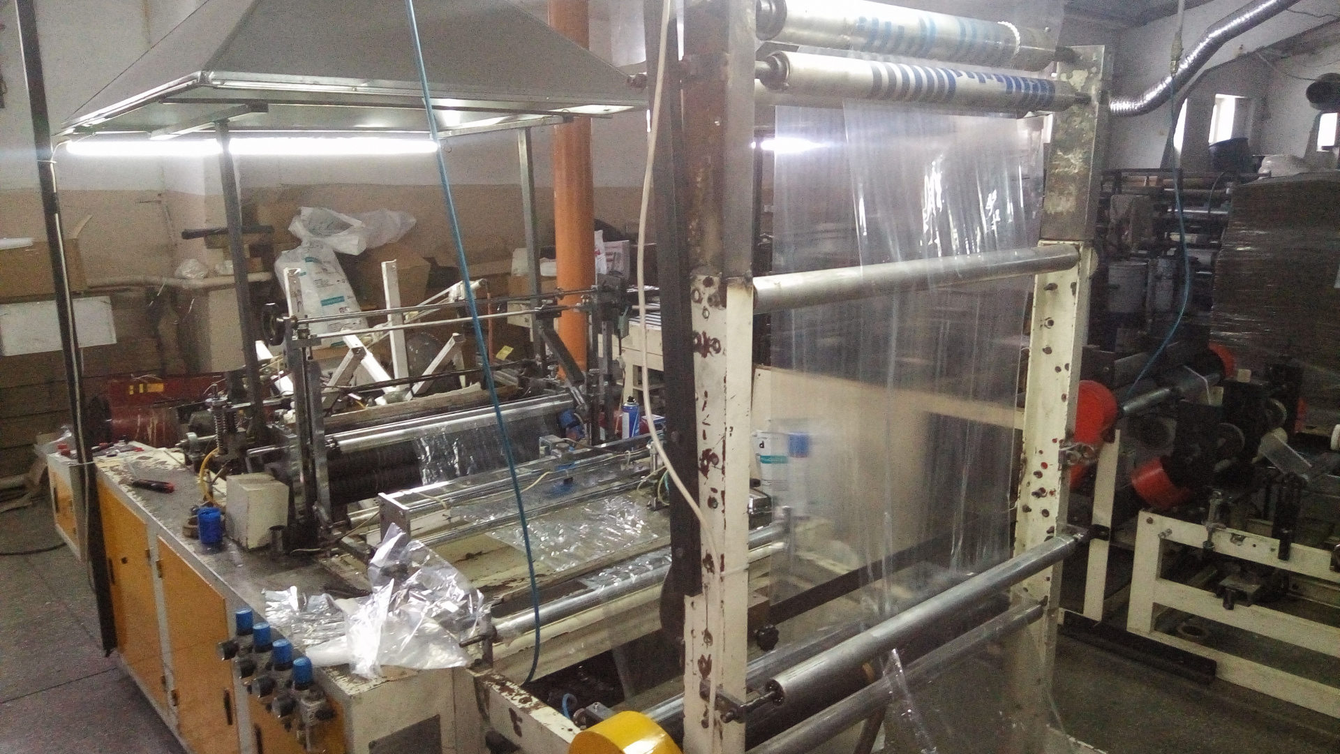 Продам пакетоделательную машину в хорошем состоянии со следующими характеристиками. Переделали сами из пакетоделательной машины по типу JR-700. Установили пневмовырубку, мельницу для сбора готовых пакетов с воздушным прижатием, а также сами изготовили угол для сворачивания пленки.