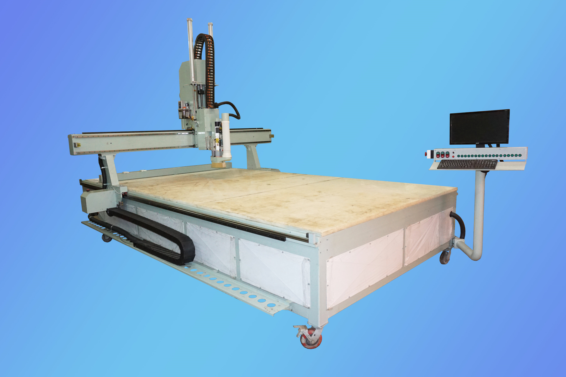 Рабочее поле размером 2250х3700 мм позволяет охватывать весь спектр листовых древесных, полимерных и композитных материалов.
