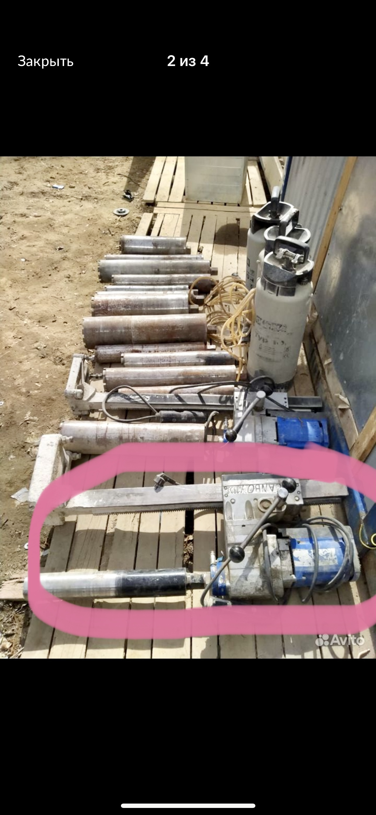 Алмазная установка 3450 Вт, сверление до 500 мм. Новые коронки в наличии, диаметры: 162мм-1 шт. 8000 руб.; 152 мм-1 шт.; 102 мм-5 шт. 5000 рублей за шт., 82 мм-1 шт. 5000 руб. В наличии насос. В рабочем состоянии.