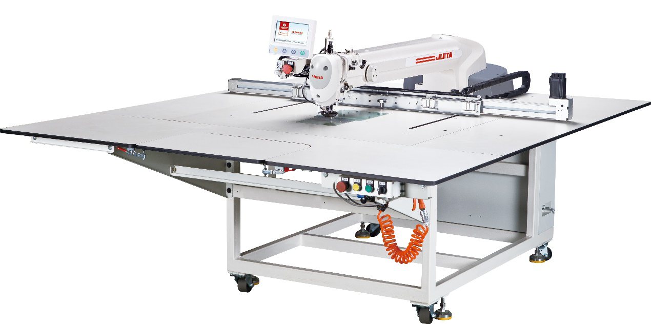 Автоматическая шаблонная швейная машина (швейный автомат / свободно программируемая швейная машина) JUITA JTK8F-150110A (поле шитья 150 на 110 см) с программным управлением используется для стежки сложных рисунков на любых типах материала или шитья по шаблонам для автоматизации следующих задач: