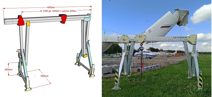 Комплектуется цепной талью, с ручным приводом, грузоподъёмностью не более 4т.устройство устанавливается на специальные шасси с учетом передвижения устройства с грузом.