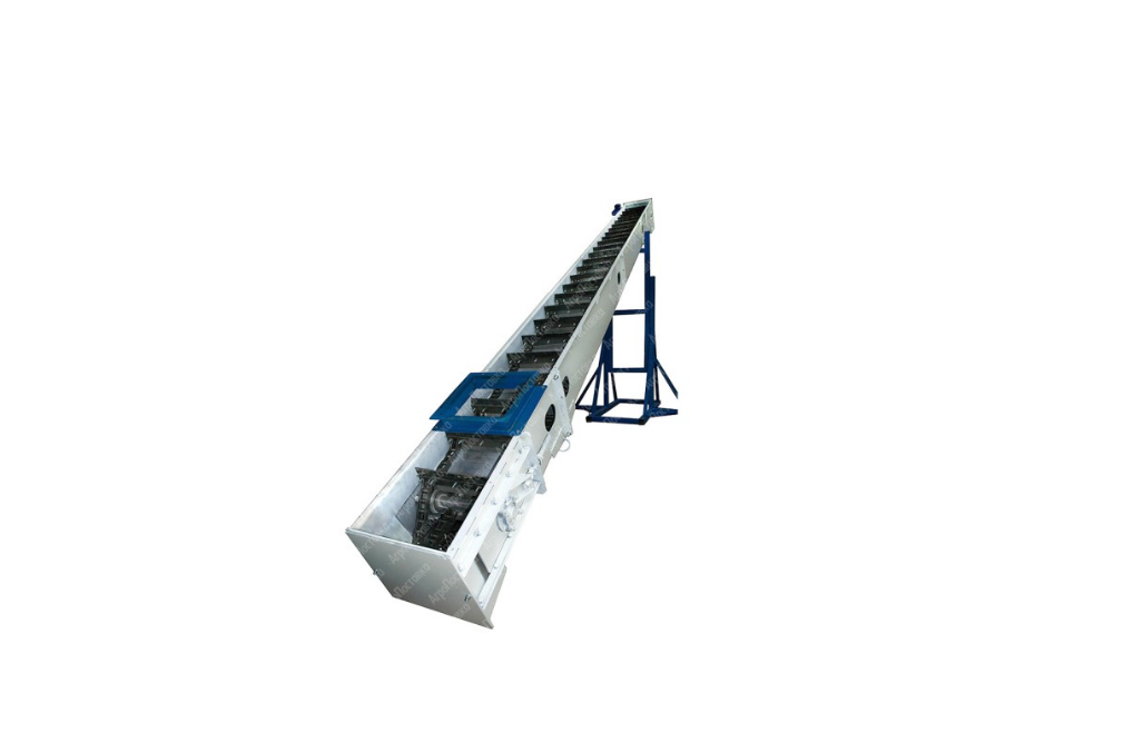 Завод-производитель предлагает транспортёры цепные скребковые собственного производства. Цепные транспортеры непрерывного действия, в котором перемещение сырья осуществляется по неподвижному желобу с помощью скребков, закреплённых на катковой цепи и погруженных в слой насыпного груза. Цепные конвейеры эффективны при перемещения сыпучих мелкофракционных и мелкокусковых материалов влажностью до 60% (опила, щепы, коры, зерна) в горизонтальном и наклонном (до 40°градусов) направлениях.
