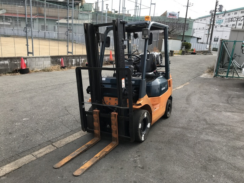 Вилочный погрузчик Toyota 02-7FG18. Номинальная грузоподъемность 1,8 тонны, при удалении груза от каретки не более метра. Максимальная высота подъема вил 3 метра. Мачта двухсекционная (duplex) не теряет грузоподъемности при высоте подъема. Двигатель газ-бензиновый, имеющий заводское газовое оборудование, благодаря чему автопогрузчик в теплое время года позволяет запускать сразу на газу без прогрева системы на бензине. Коробка переключения передач классическая и самая распространенная в настоящее время - автоматическая с гидротрансформатором (гидромеханика). Оборудованный карбюраторным двигателем, который малотребователен к качеству топлива и главное ремонтопригоден - Toyota 5K, 4-цилиндровый с рабочим объемом 1.5 литра. Колеса 10 диаметра на ведущей оси, что улучшает проходимость автопогрузчика.
