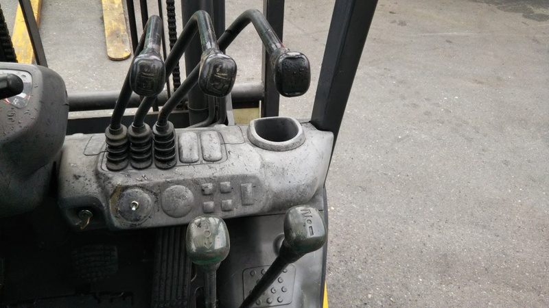 Вилочный погрузчик Komatsu FG15C-18. Номинальная грузоподъемность 1,5 тонны, при удалении груза от каретки не более метра. Максимальная высота подъема вил 4 метра. Мачта двухсекционная (duplex) не теряет грузоподъемности при высоте подъема. Тип привода: газ-бензин, имеющий заводское газовое оборудование, благодаря чему автопогрузчик в теплое время года позволяет запускать сразу на газу без прогрева системы на бензине. Коробка передач простая механическая 2-ступенчатая, что также позволяет установить отвал, оборудованный карбюраторным двигателем, который малотребователен к качеству топлива и главное ремонтопригоден - Nissan H15, 4-цилиндровый с рабочим объемом 1.5 литра и мощностью 34 лошадиных сил. Установлена каретка бокового смещения (side-shift), позволяющая смещать груз на вилах влево и право на 10 см в каждую сторону, что существенно ускоряет процесс работы и делает его более безопасным. Колеса 10 диаметра на ведущей оси, что улучшает проходимость автопогрузчика.