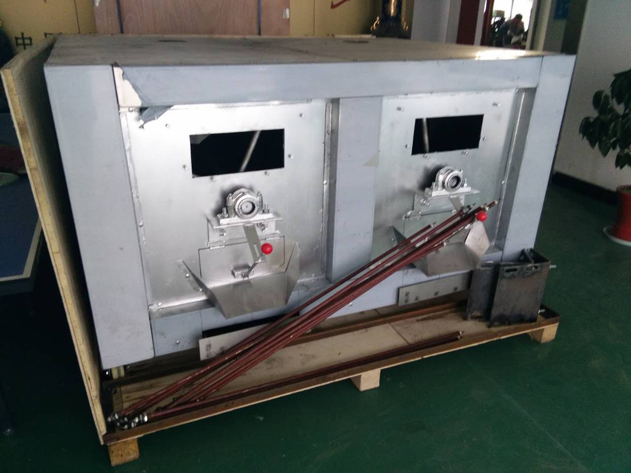 Машина для жарки барабанного типа состоит из передающего устройства, электротермической трубы, электрического контрольного кожуха и барабана. Она контролирует температуру автоматически при помощи регулятора температуры. Машина характеризуется высокой степенью автоматизации, низким уровнем шума, отсутствием загрязнения окружающей среды и большим выходом. Это идеальное оборудование для обжарки зернистых продуктов, такие как арахис, семена дыни и соя, и т. д. Оборудование предназначено для сушки и обжаривания в потоке горячего воздуха сыпучих продуктов (арахис, соя, кофе в зернах, бобы какао, орехи, семена подсолнечника и др.)