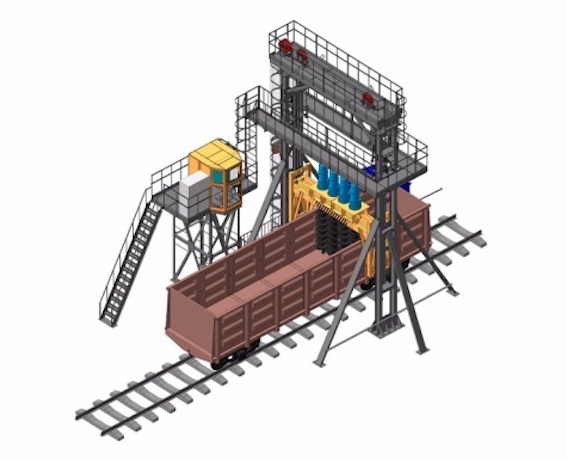 Устанавливается на фундаменты над ж/д путем. Работает в комплексе с системой позиционирования (маневровое устройство, толкатель, позиционер и т.д.).