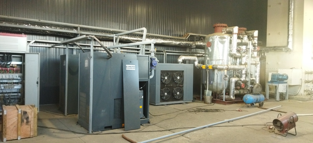 Воздух сжимается до 1,0 МПа воздушными компрессорами Atlas Copco GA 90 и охлаждается доохладителем, после чего поступает в устройство предварительного охлаждения воздуха.