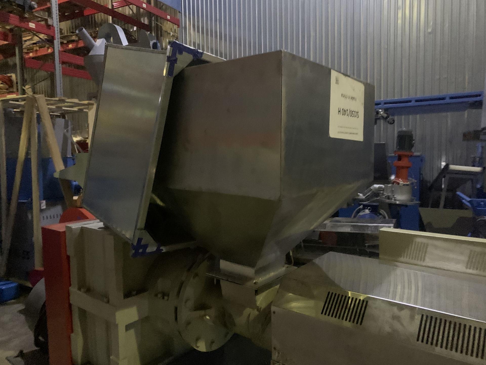 Продаю новую двухкаскадную линию грануляции для твердых пластиков SJ 150/140H.Идеально подходит для ПНД ПВД ПП АБС ПС. Стренговая линия (холодная резка) с производительностью до 220 кг/ч оснащена 2 мощными экструдерами ( 55+22 кВТ), засыпным бункером, надежными 45 шнеками, обработанные ТВЧ, 6 зон нагрева, одноканальным механическим фильтром, ванной для охлаждения стренг, накопителем для гранулы, ножевым стренгорезом, а также шкафом управления с 6 зонами нагрева.