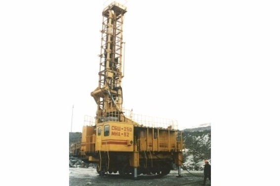 Самоходный буровой станок СБШ-250МНА-32КП на гусеничном ходу каркасно-платформенного исполнения предназначен для шарошечного бурения взрывных скважин диаметром до 311 мм глубиной до 28 м на породах с пределом прочности до 300 МПа при одноосном сжатии.