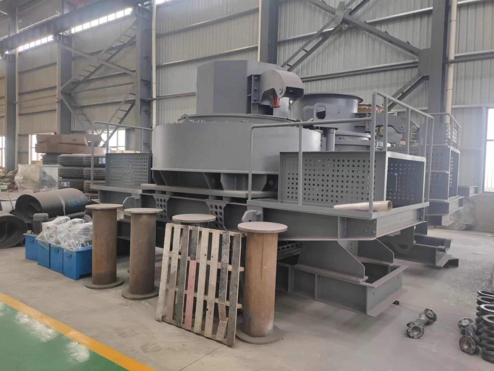 Пескомашина (центробежная ударная дробилка) представляет собой новое поколение продуктов, в основе, которой лежит передовая техника из Германии. Имеет много патентов. Предполагает три типа дробления и является основным оборудованием в области производства песка.