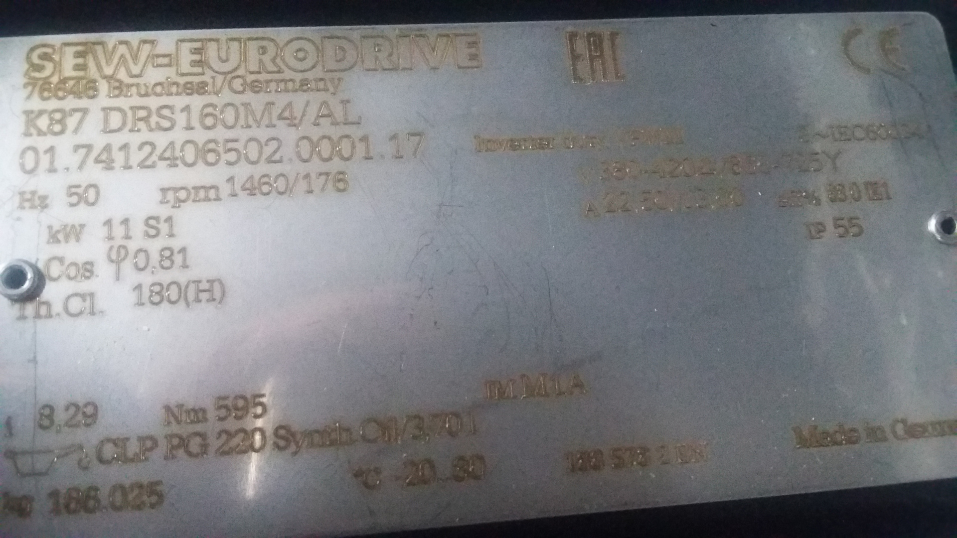Мотор для редуктора 07.11.14 07.02.03.02;F67 DRN904SDH 1,1kW 12,3 rpm 89.3206.90.1227; SEW R77 DRE90L4 65.7202562701.0001.15; SEW-Eurodrive