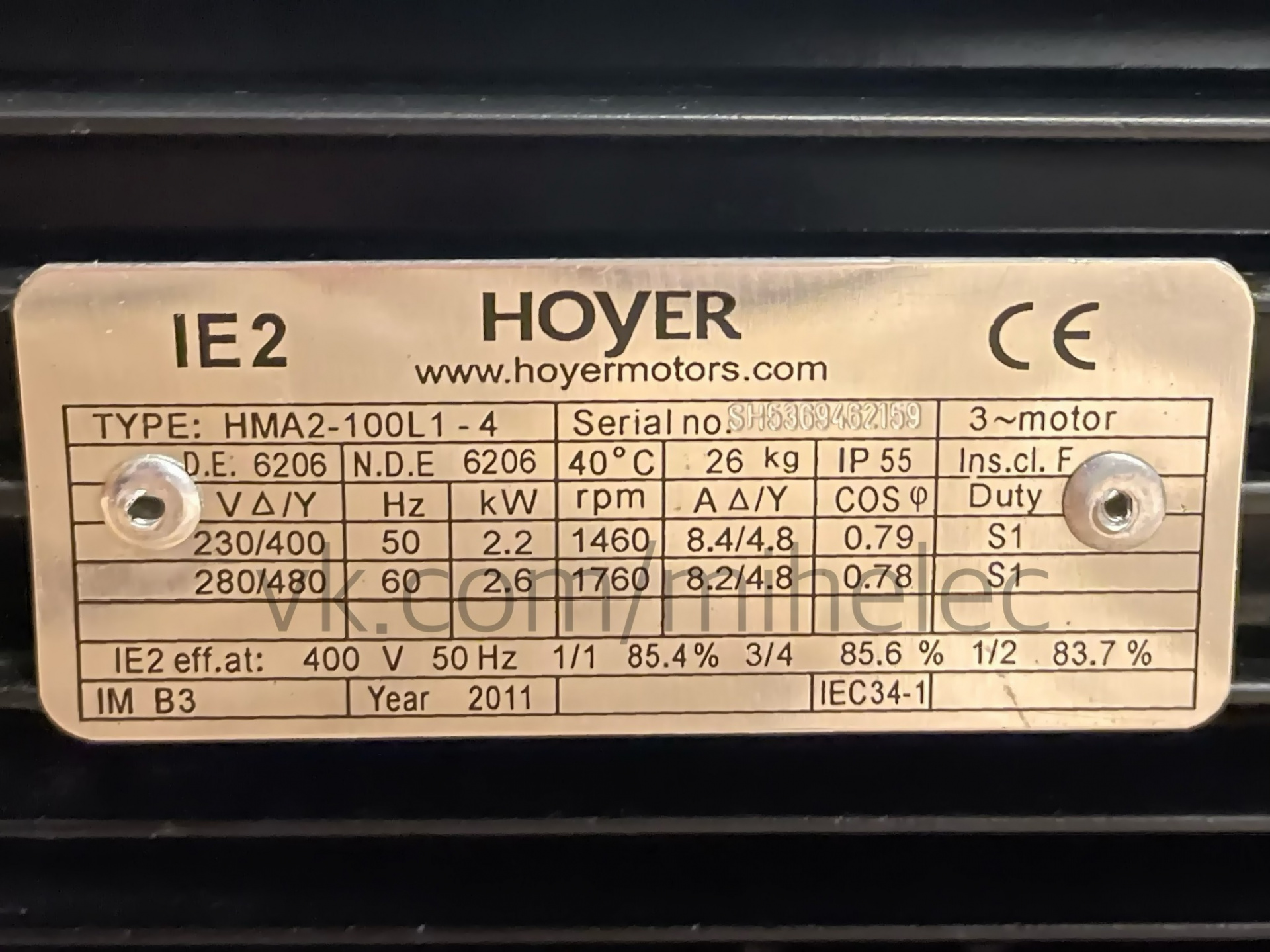 Электродвигатель Hoyer HMA2-100l1-4 2.2 кВт 1460 об/мин (2,2 квт 1500 оборотов в минуту) - Продам в Москве