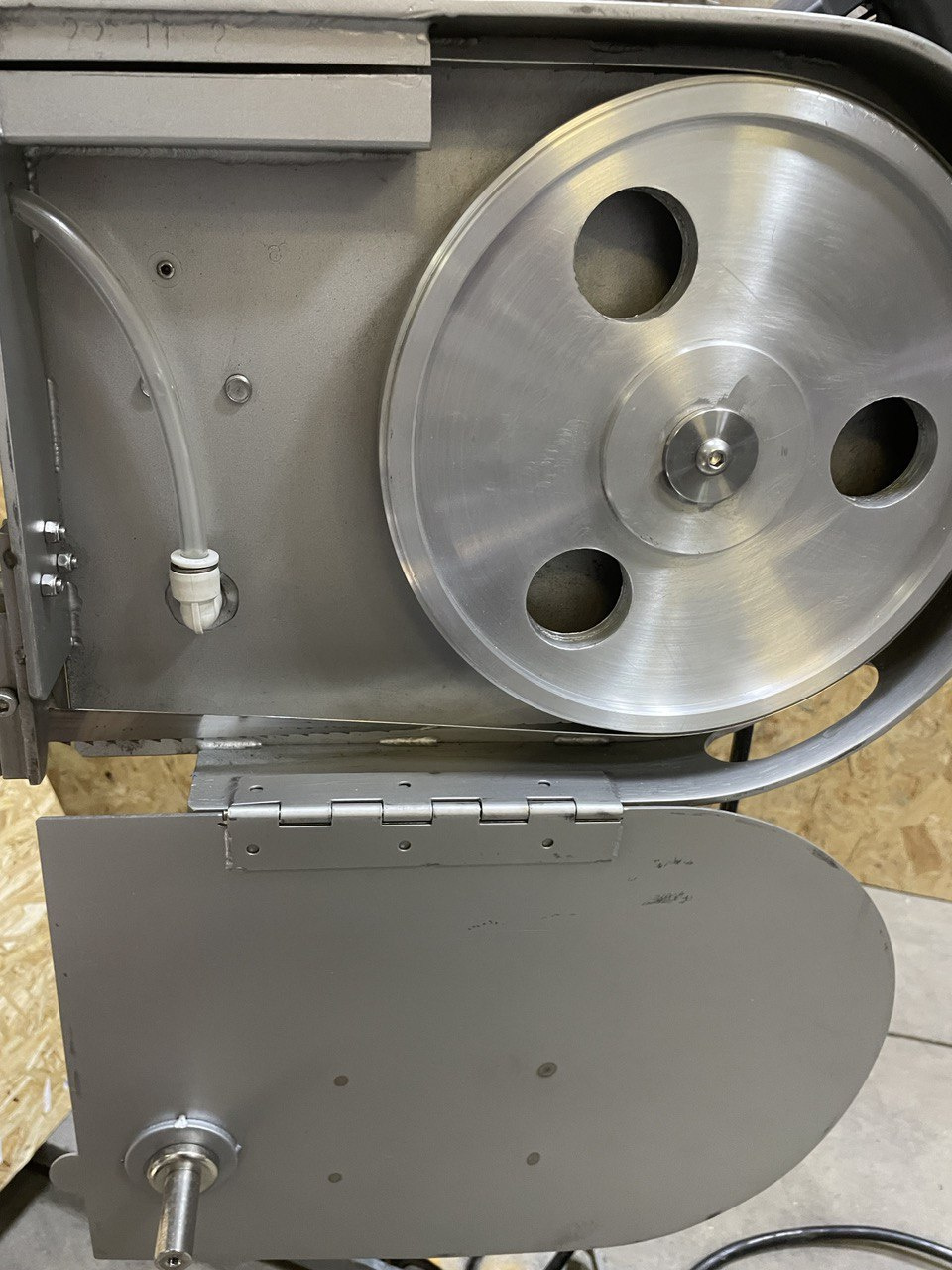 Ленточная пила для вертикальной распиловки свиней на полутуши. Обладает высокой производительностью. На выходе получаются полутуши с ровным и чистым срезом. Корпус выполнен из нержавеющей стали. Пила оснащена удобными захватами, позволяющими легко работать на протяжении смены. Включение двигателя происходит автоматически, включением курка одной рукой. Дополнительно, ленточная пила для разделки туш укомплектована пружинным балансиром. Данную модель можно купить у компании ООО «Артекс» по максимально выгодной цене в Ивантеевке.