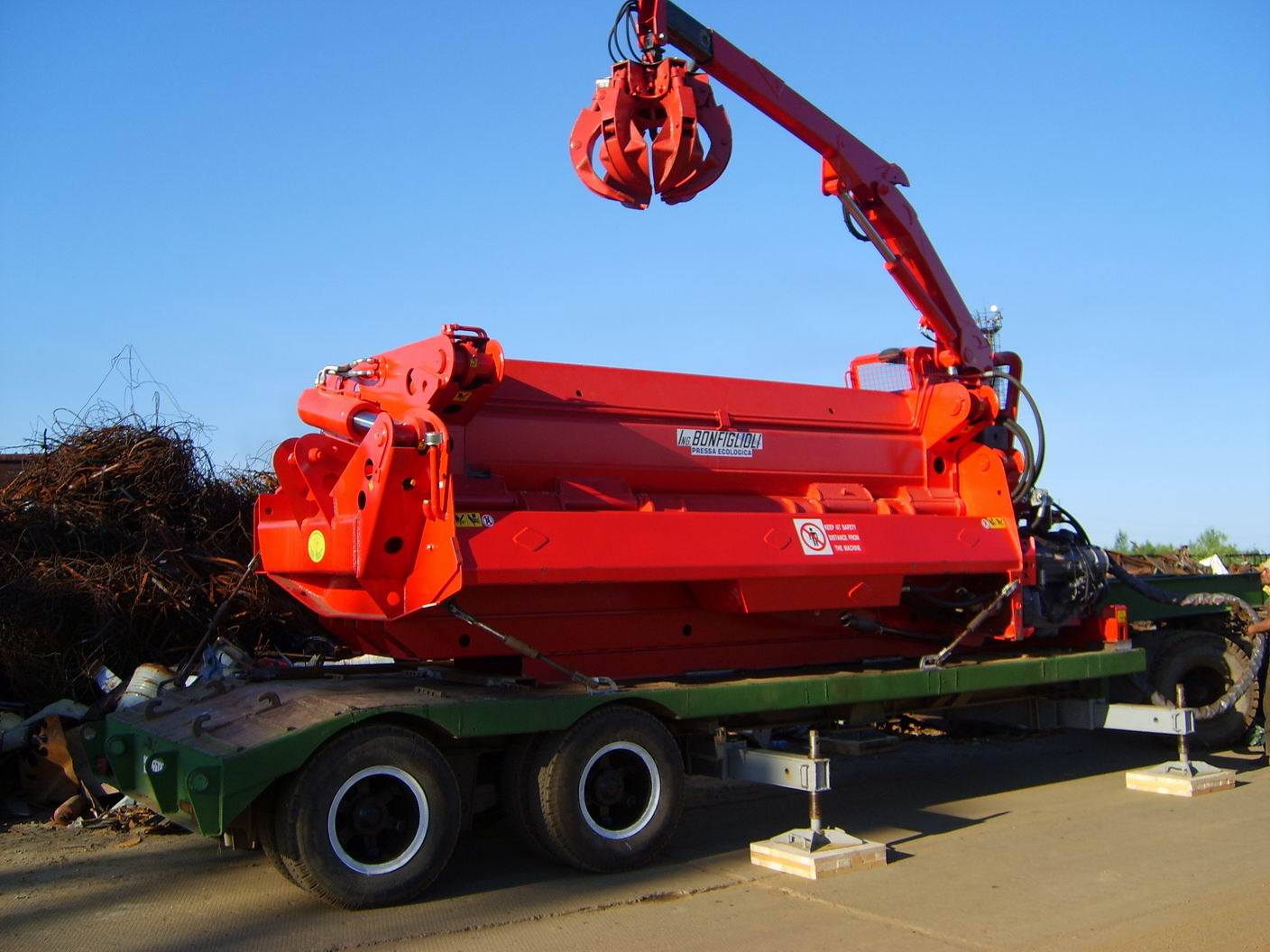 Пресс оснащен манипулятором P 15000L/2SI с грейфером, возможна установка электродвигателя.