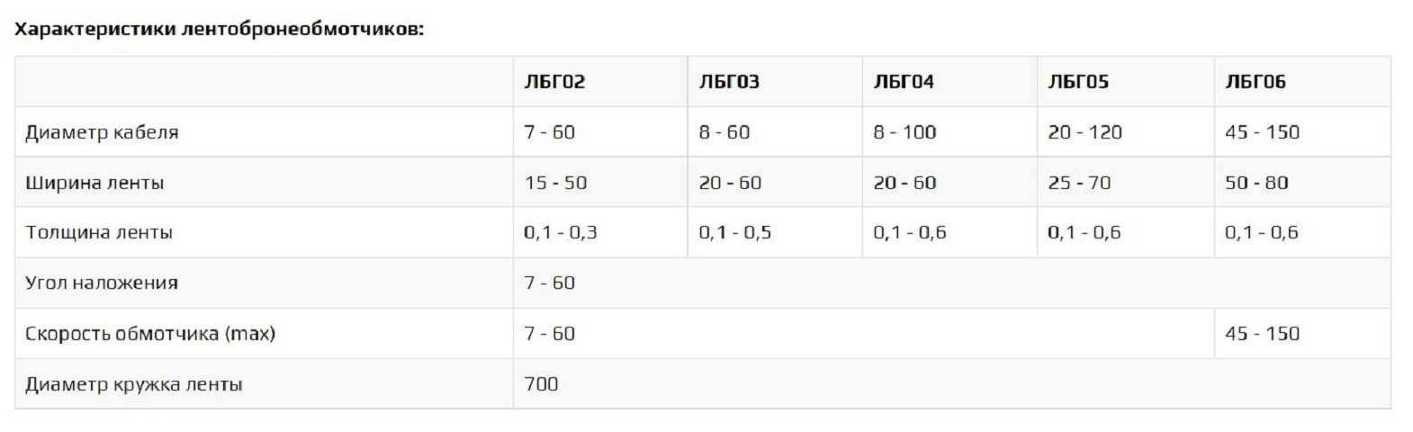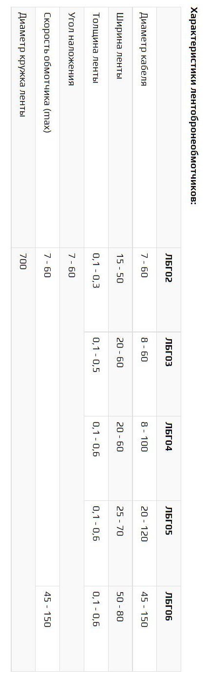 Характеристики лентобронеобмотчиков: смотрите в прикрепленном фото.