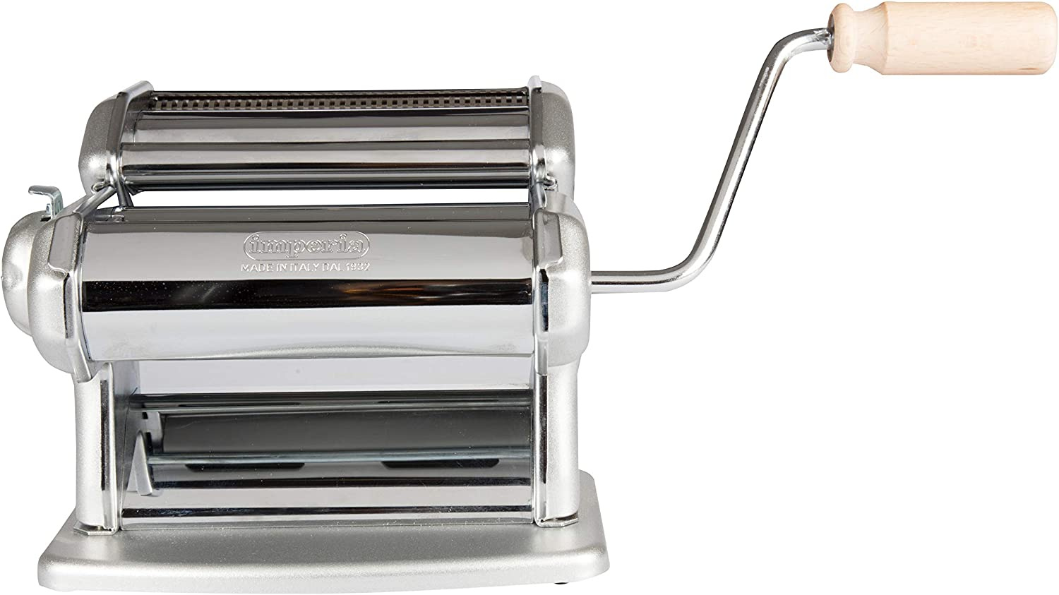 - Imperia 100 - это ручная тестораскаточная машина с функцией нарезки лапши, изготовлена в Италии из хромированной стали, чтобы обеспечить ее прочность и долговечность.