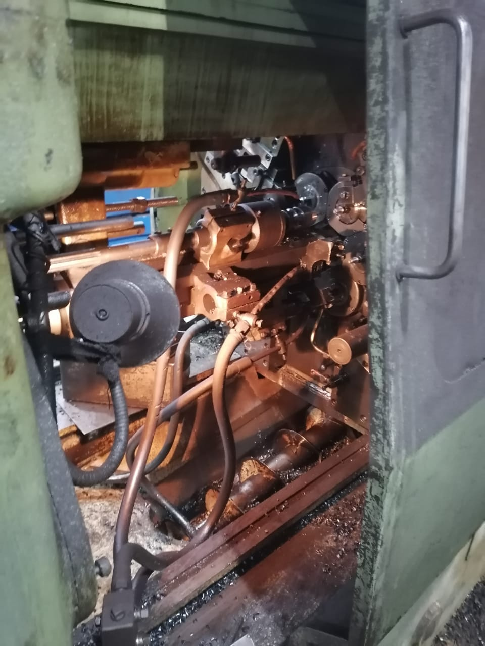 Автомат предназначен для обработки деталей из прутка различного профиля. В шести позициях шпинделей одновременно могут производиться черновое, чистовое и фасонное обтачивание, подрезание, прорезание, центрование, сверление, растачивание, нарезание наружной и внутренней резьб, а также другие операции. Состояние рабочее. Количество два.