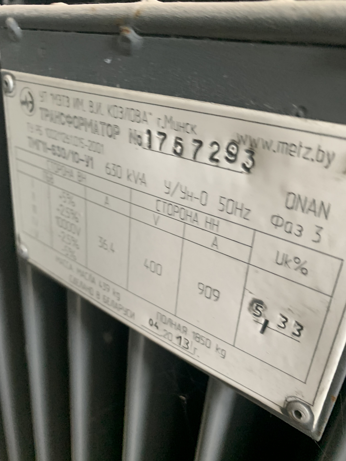 Трансформатор ТМ, ТМГ, ТМЗ 630/10/0,4 630/6/0,4