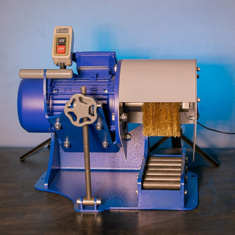 Станок для удаления ржавчины, старого лакокрасочного покрытия с металлопроката любого сечения размером до 80х80мм, благодаря нашему станку вы сможете с высокой эффективностью очищать профильную, а так же круглую трубу, полосу или круг, арматуру или квадрат. Так же на нашем оборудовании вы сможете производить брашировку дерева.