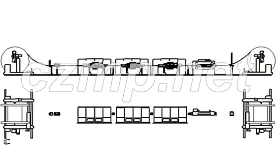 Управление машиной сформировано на базе общего контроллера. Система управления предлагаемая для комплектования линии - Сименс или Дельта, приводная часть - Эмерсон или Дельта. Для ввода параметров и визуализации состояния процесса применяется сенсорная панель оператораф. Дельта или комбинированная панель ф. Сименс.Предусмотрены 2 режима работы машины - заправочный и рабочий. При возникновении потребности ремонта или выбраковки изоляции оператор может воспользоваться режимом реверсивной отмотки кабеля. Отдающее и приёмное устройства колонного траверсивного типа. Грузоподъёмность устройств достигает 15 000 кг. Раскладка кабеля на приёмном и размотка с отдающего барабана осуществляется траверсивным перемещением станков с барабанами. Каждый станок имеет индивидуальный пост управления для корректировки параметров их работы (усилие натяжения, шаг раскладки, положение траверсы).
