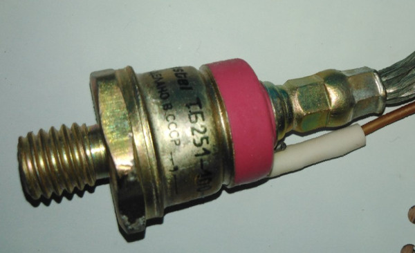 Тиристори швидкодіючий ТБ251-100 регулюють і перетворюють постійний та змінний струм до 100 ампер частотою до 10кГц у ланцюгах з напругою 500В - 1400В.