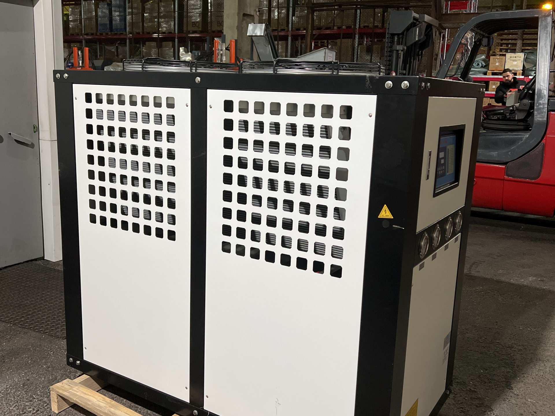 Чиллер с воздушным охлаждением конденсатора, Мощность компрессора - 4кВт, Тип компрессора - Спиральный, Объем охлажденной воды - 120 л/ч, Тип испарителя - Пластинчатый медно-паяный, обеспечивает отвод тепла от хладоносителя. Герметичный. Производительность - 17544 ккал/час