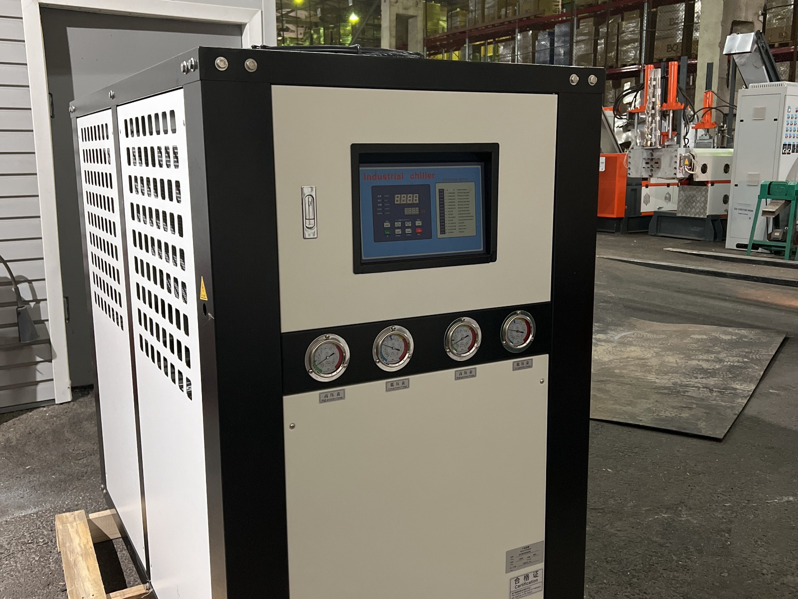 Чиллер с воздушным охлаждением конденсатора, Мощность компрессора - 4кВт, Тип компрессора - Спиральный, Объем охлажденной воды - 120 л/ч, Тип испарителя - Пластинчатый медно-паяный, обеспечивает отвод тепла от хладоносителя. Герметичный. Производительность - 17544 ккал/час