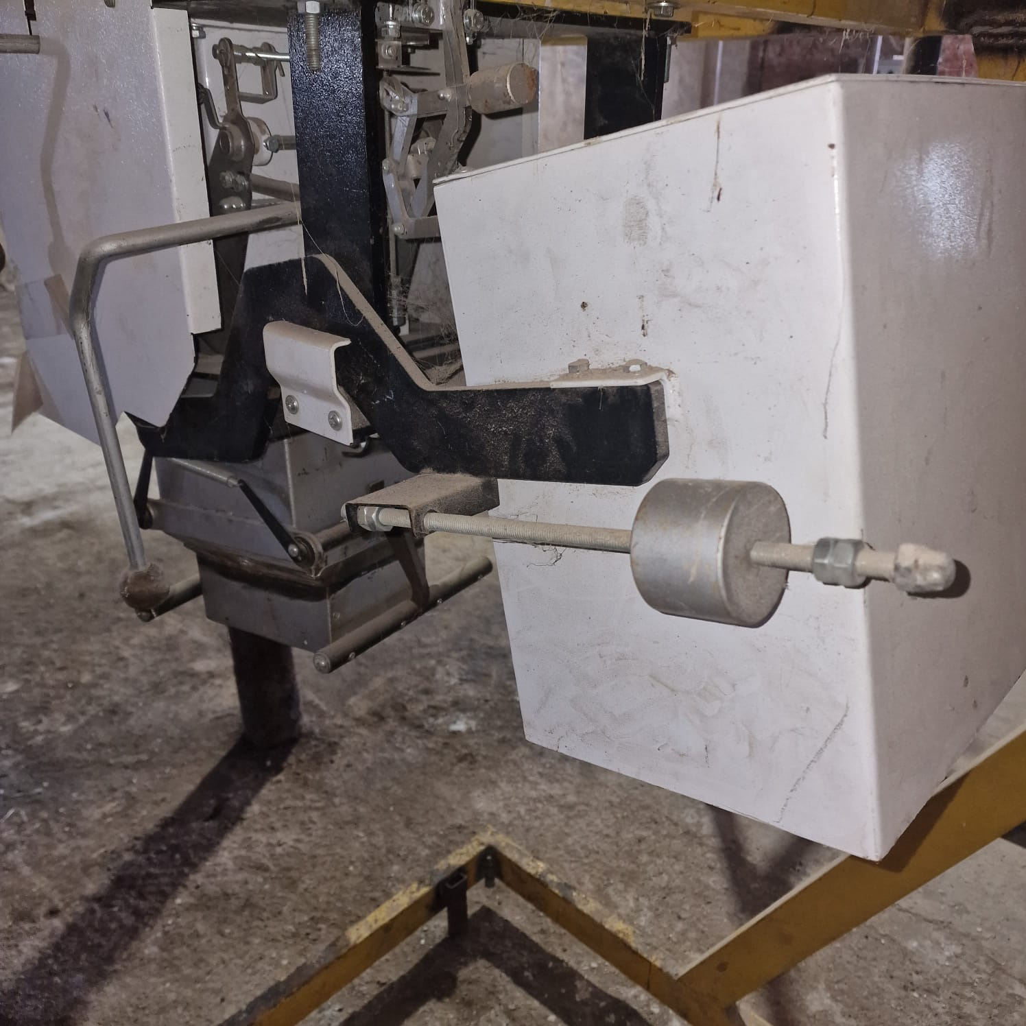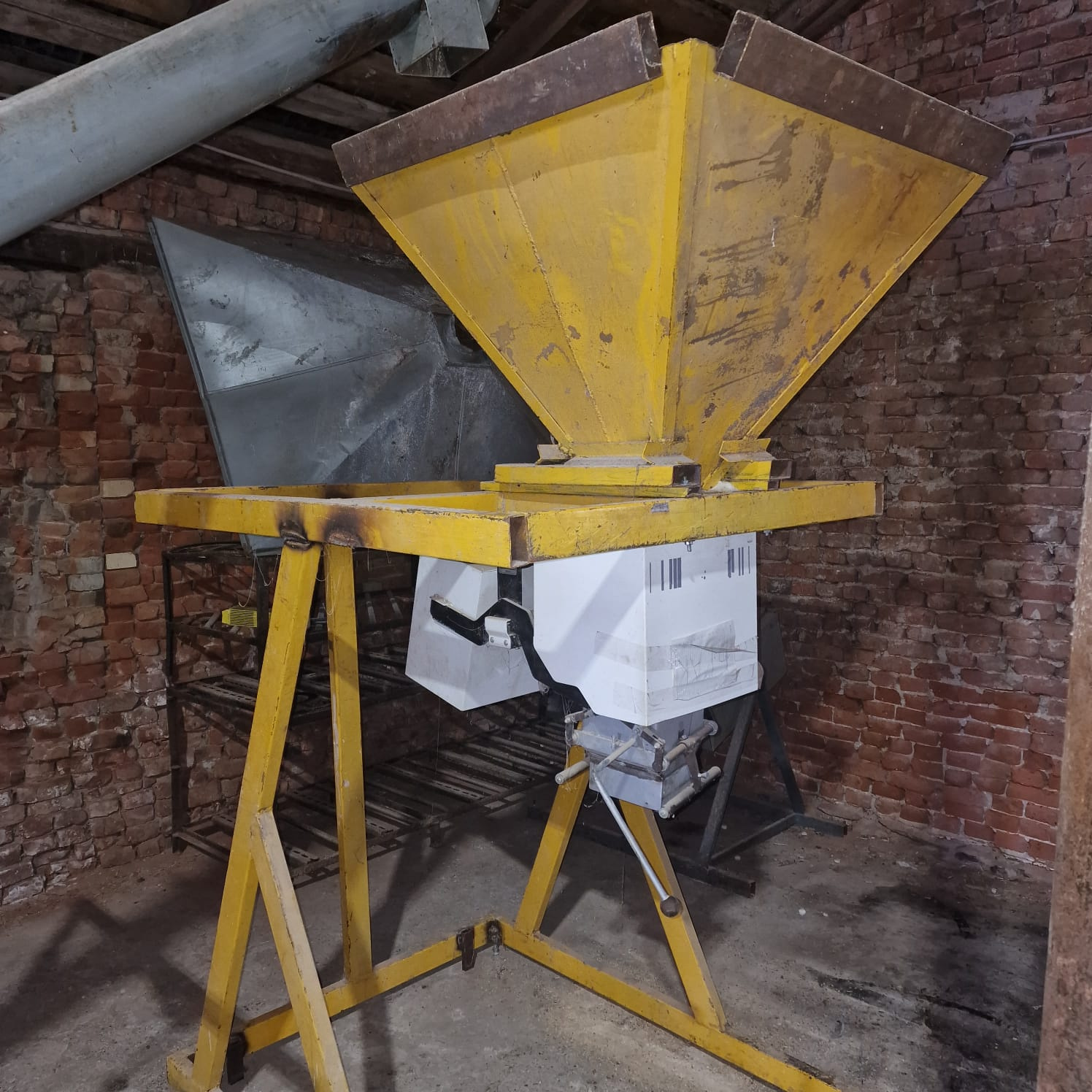 5 механический дозатор полуавтомат( взвешивание 3-50 кг, механическая регулировка) с приёмным бункером 200 литров на станине.