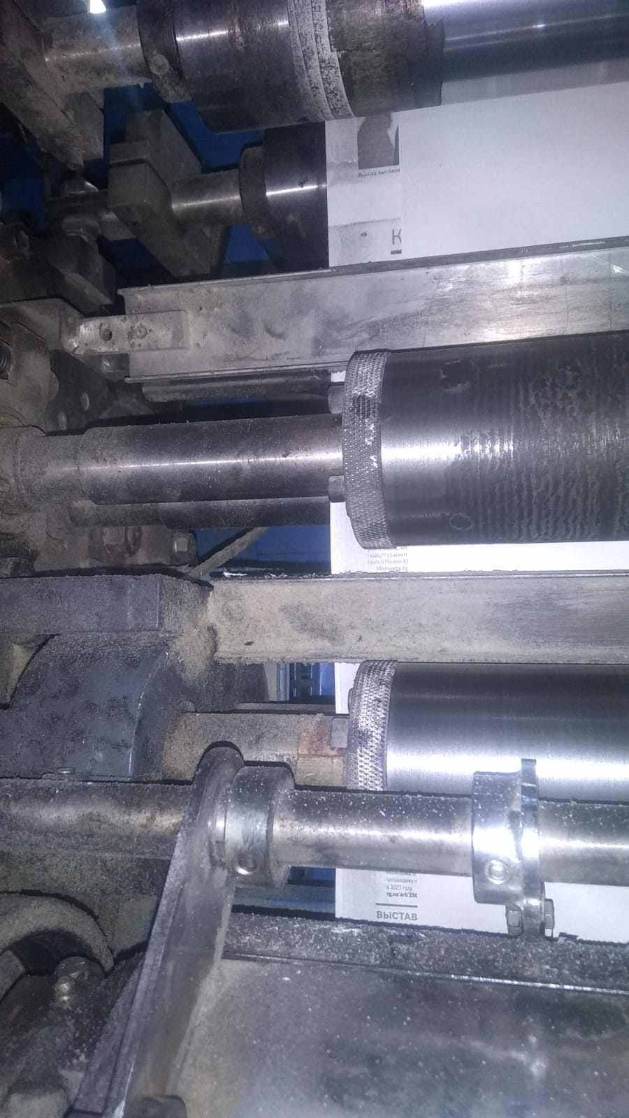 Рассмотрим к приобретению фальцаппарат целиком или по запчастям. На фото фальц с перфорацией и без. Если по запчастям, то интересует вторая пара тянущих валов !