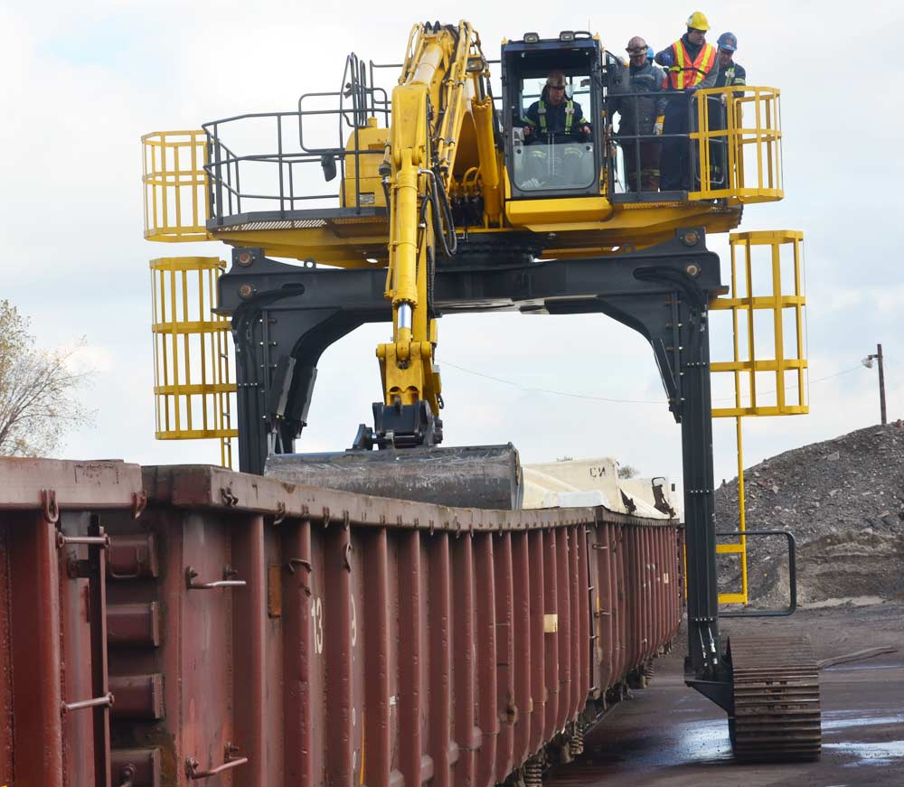 Портальная ходовая для экскаватора позволяет превратить экскаватор в перегружатель инертных материалов. Перегружатель вагонов удобен на предприятиях, где требуется высокая производительность по разгрузке вагонов. Перегружатель позволяет эффективно разгружать и вычищать, замерзший уголь, песок. Возможны модификации экскаваторов до 40 тонн с ковшом до 3м3.
