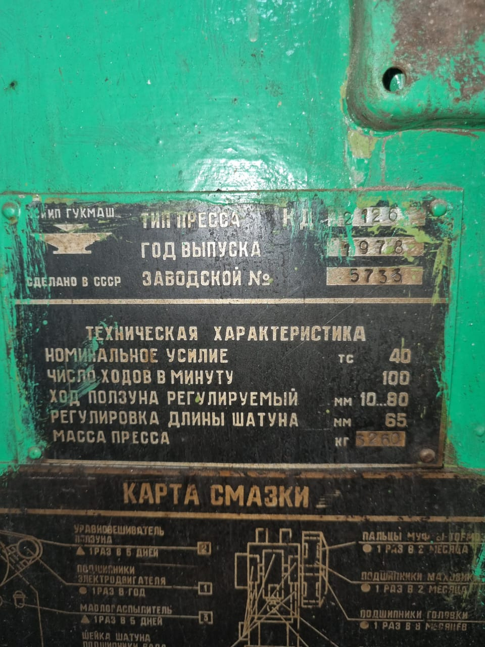 Пресс однокривошипный простого действия открытый КД2126 Б/У - Продам в Ленинске