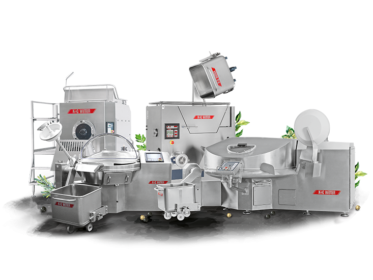 Куттеры, фаршемешалки, шприцы вакуумные и роторные, клипсаторы, мясорубки, шкуросьемные машины, льдогенератопы чешуйчатого и кубикового льда, термокамеры, варочные котлы, холодильные установки, ножи и сетки для мясорубок.