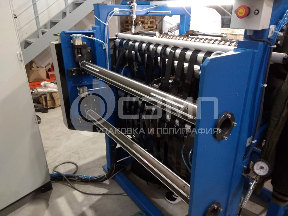 Намотка осуществляется бесконтактным методом, на два разжимных пневматических вала.