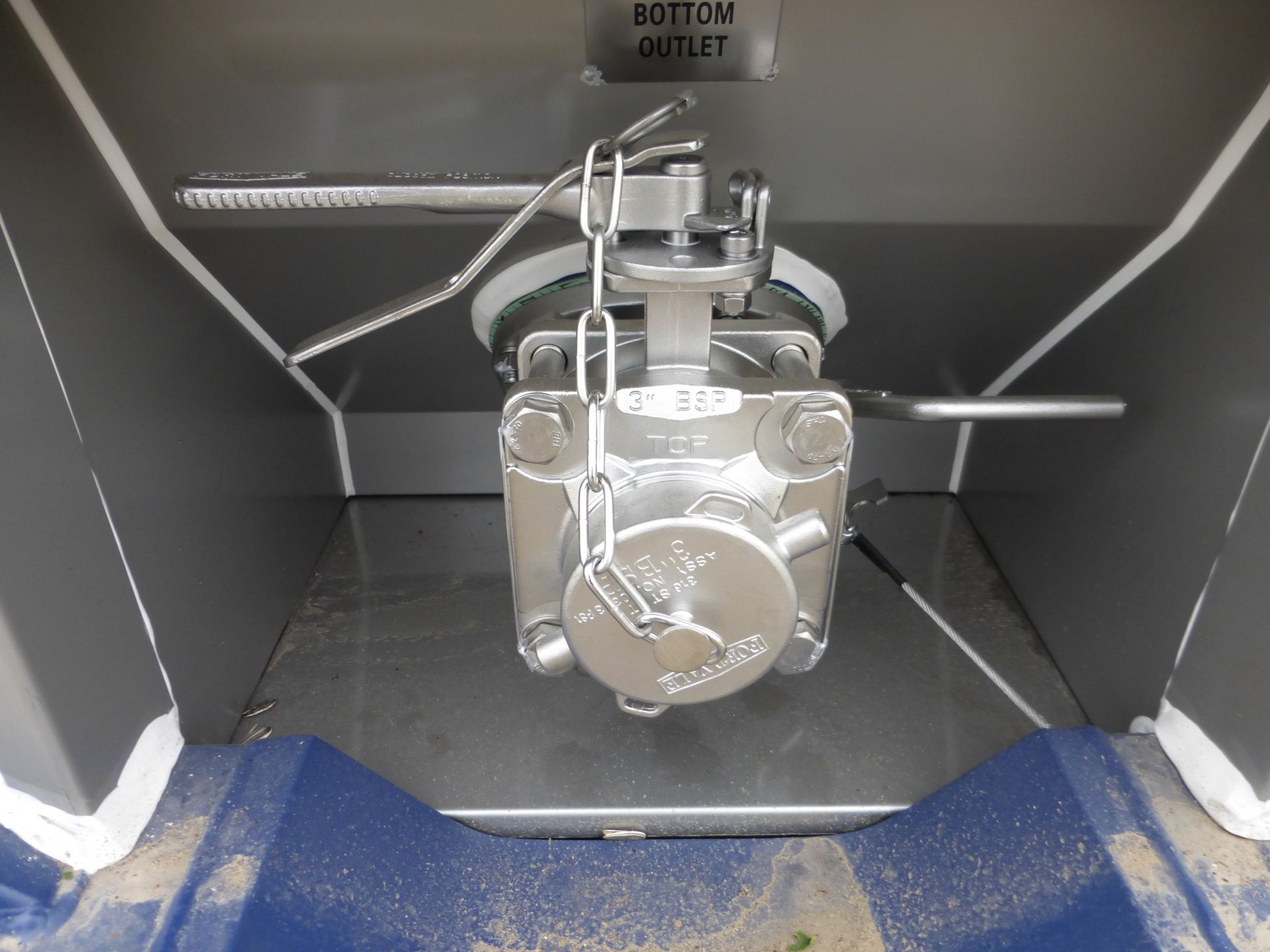 Нижнее устройство слива (налива) груза (производитель Fort Vale) Последовательно установленные внутренний 3” 45° донный клапан и 3” зажимной поворотный кран (наружный клапан) и выходной патрубок с резьбой 3"BSP и резьбовой крышкой, смонтирован на вварном фланце 324/9000 (по каталогу FV) (см. рис.3)