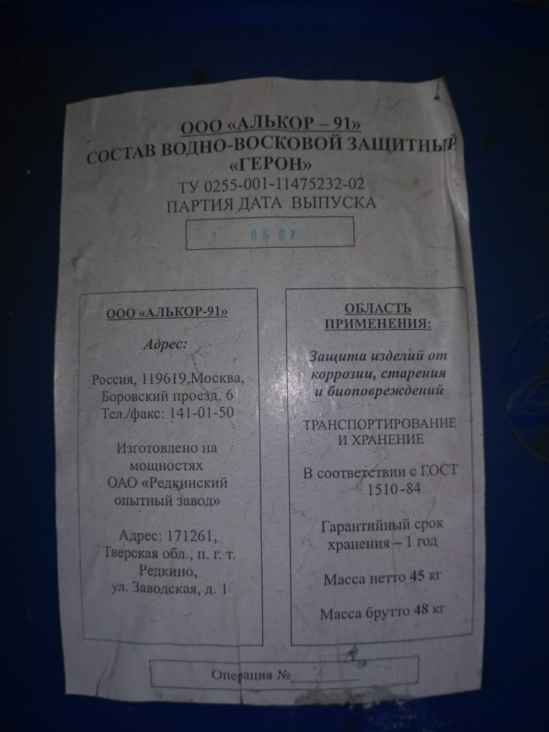 СВВЗ «Герон» представляет собой дисперсию воска (церезина) в воде с добавлением поверхностно-активных веществ и ингибиторов коррозии. Предназначен для защиты от коррозии и старения деталей, сборочных единиц и элементов конструкций машиностроения и строительной индустрии.
