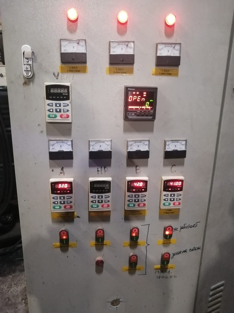 Плоскощелевой экструдер сильно б/у, выработка 2600/сут. Работал преимущественно на вторичке.